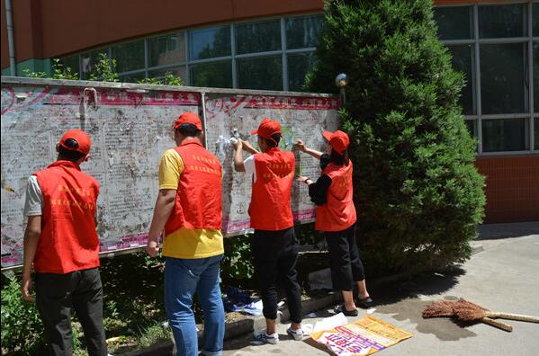 為扎實推進校園文明建設,創建潔凈的校園環境,營造和諧有序的校園文化氛圍,全面助力文明城市創建工作,6月9日中午,院團委組織學生會、大學生社團聯合會的團學干部開展“聚團學之力,創文明校園”活動,集中清除校園內張貼的小廣告。