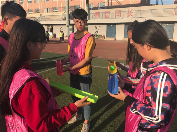 活動伊始,由系文體部部長帶領新生進行熱身運動,完成了“歸堆抱團”的集體項目。在拓展訓練中,同學們被隨機分成5組,并按要求在15分鐘之內選出隊長、隊秘、旗手,以及設計完成隊名、隊徽、隊訓等。之后開展了“一路到底”、“接桿游戲”以及“青蛙蹲”等拓展項目訓練,活動中同學們積極參與、熱情高漲。隊內的相互配合和對外的相互競爭,使大家既體驗到協作、勇氣、戰勝自我帶來的成功喜悅,又深刻感受到信任、協作、責任的精神。
