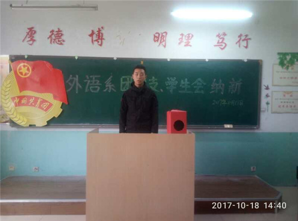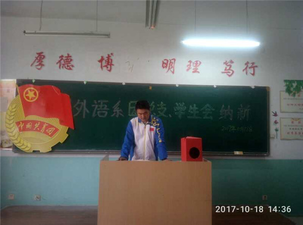 為了給2017級新生提供展現自我的平臺,培養他們的實踐能力,提升綜合素質,10月18日,應用外語系團總支在博學樓114教室舉辦學生會納新活動。