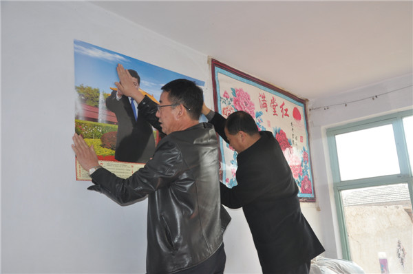 在駐村干部、村干部的帶領(lǐng)下,先后深入57個貧困戶家中,看望貧困戶,詳細(xì)了解貧困戶情況,幫助分析貧困原因,尋求脫貧辦法和渠道,并將結(jié)對幫扶聯(lián)系卡送到貧困戶手中,幫助張貼結(jié)對幫扶圖畫。