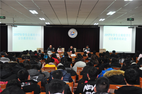 12月1日下午,學(xué)院在綜合樓307報告廳舉辦2017年學(xué)生公寓宿舍長安全教育培訓(xùn)會。學(xué)工處處長馮志成,副處長安珊珊、張建東,公寓管理科科長徐國明,公寓輔導(dǎo)員、宿管委員會學(xué)生干部及大一、大二年級宿舍長300余人參加了培訓(xùn)會。培訓(xùn)會由學(xué)工處處長馮志成主持。