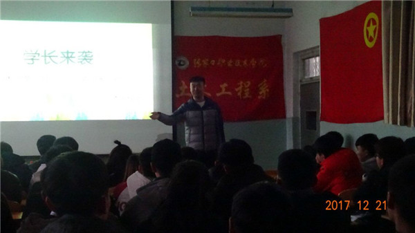 為了讓大一學生開拓視野,更好地規劃未來,12月21日,土木工程系在求知樓306教室舉辦了“學長來襲”主題活動座談會。