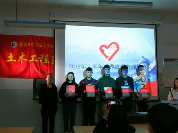 2018年上半年,土木工程系開展了“迎冬奧 樹新風 雷鋒精神伴我行”校園清掃、助力創城機場志愿服務、“助力冬奧 為愛健行 ?為星加油”關愛自閉癥兒童、“創文明城市 服務共享單車”社區服務等多項志愿活動,受到社會各界廣泛好評。系相關負責人為受表彰的45名志愿者頒發獲獎證書。