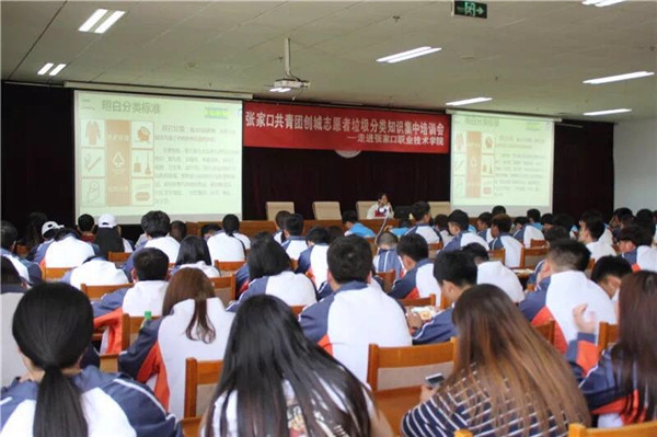 為助力我市創建全國文明城市,增強志愿者知識儲備,5月14日,在團市委統一安排部署下,“創城志愿者集中培訓會”走進我院,特邀張家口學院專業教師為我院志愿者進行垃圾分類知識集中培訓。共青團張家口市委副書記溫旭春出席培訓會,我院生態環保志愿服務隊全體志愿者以及各系志愿者骨干代表300余人參加培訓。