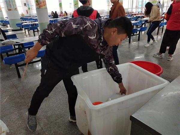 同時,各食堂均在醒目處懸掛了宣傳標語,音響廣播提示循環播放,志愿者現場督促、呼吁。各系團總支也積極響應號召,組織本系學生在餐廳發放文明用餐、健康飲食宣傳頁,提醒就餐者主動回收餐具,杜絕浪費和用餐不文明現象的發生。