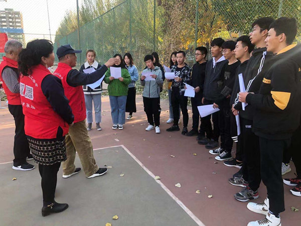 經開區威風鑼鼓義工隊的老師為學生們講解了《沒有共產黨就沒有新中國》、《團結就是力量》兩首經典紅歌的創作背景及時代意義,也推動了與會者更好領會“不忘初心、牢記使命”主題教育的重要意義。現場人員分組教唱革命歌曲,并進行了合唱匯報表演。歌聲唱出了昂揚向上的精神面貌,唱出了學生、群眾對黨的熱切祝福。
