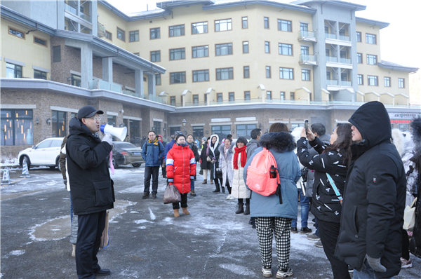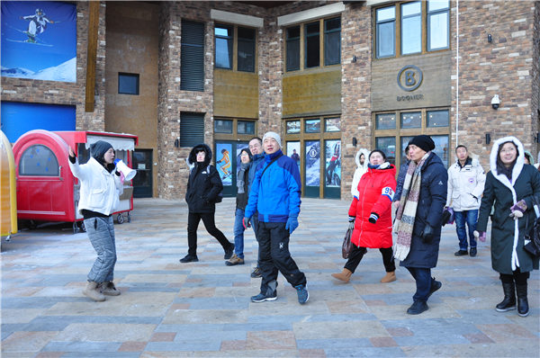 活動中,開展了冬奧知識有獎競賽、播放冬奧知識光盤等一系列趣味活動,并在講解員的引領下參觀了太舞小鎮、接待大廳、太舞酒店,了解小鎮規劃,乘纜車參觀了“2160”山頂。到達滑雪場,講解員強調了滑雪安全注意事項,大家依次有序領取換穿雪具雪服,按照事先分組,在教練帶領下進入雪道,感受滑雪樂趣。