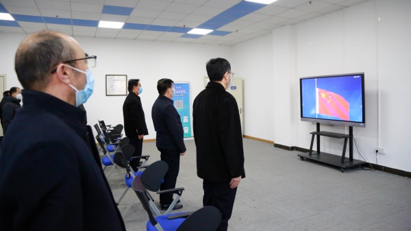 “共克時艱,戮力同行,張家口職業技術學院‘疫情’之下思政第一課,現在開課,請同學們起立,升國旗,唱國歌......”。上午8時00分,我院線上教育開學第一課正式啟動,學院領導同全院師生一起舉行隔空升國旗儀式。
