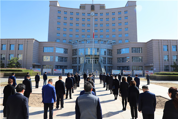 上午10時整,學院下半旗志哀,現場全體人員默哀3分鐘,表達對抗擊新冠肺炎疫情斗爭犧牲烈士和逝世同胞的深切哀悼。