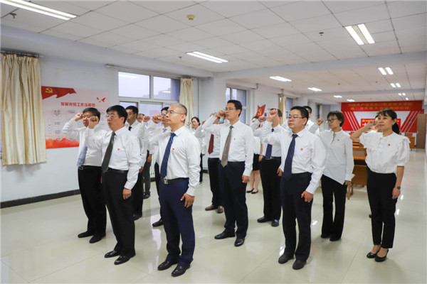 隨后,新當(dāng)選的“兩委”委員在黨旗下,重溫入黨誓詞。