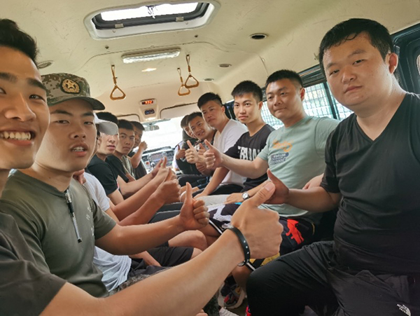 吳炳江和一起抗洪的戰友們圓滿完成任務準備返鄉