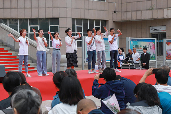 全體師生還共同欣賞了由系部教師創作表演的詩朗誦《致敬,張職院教師》、由學院學生創作表演的合唱《教師之歌》和舞蹈《綠葉對根的情意》。