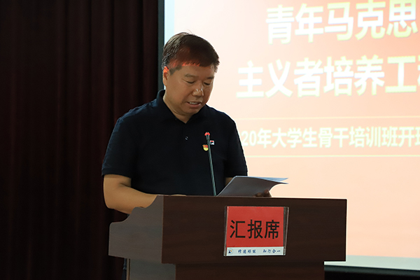 為深入貫徹黨的十九大精神,用習近平新時代中國特色社會主義思想,引領青年學生成長為中國特色社會主義事業的合格建設者和可靠接班人,9月21日下午,我院2020年“青年馬克思主義者培養工程”大學生骨干培訓班正式開班。學院黨委副書記楊汝明、團市委副書記戎海廣出席開班儀式。