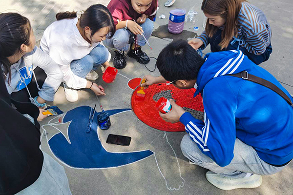 裝飾藝術(shù)系師生用手中畫筆和無限創(chuàng)意,讓一幅幅生動(dòng)而又色彩斑斕的涂鴉作品躍然“井”上,為校園增添冬奧氣息和喜悅氣氛。
