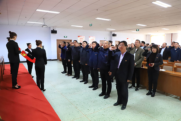 馮印濤帶領(lǐng)黨委委員,黨總支、直屬支部書記重溫入黨誓詞。
