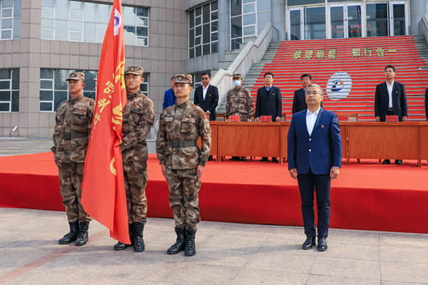 院長王立軍為我院2020級新生軍訓(xùn)團(tuán)授旗。
