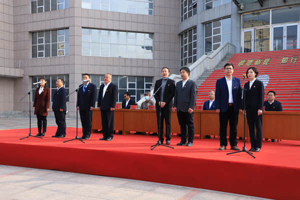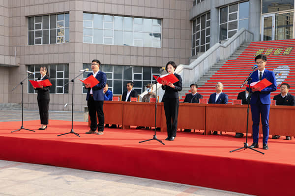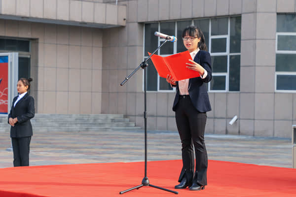 大會在莊嚴(yán)的升國旗儀式中拉開序幕。伴隨著雄壯的《義勇軍進(jìn)行曲》響起,鮮艷的五星紅旗冉冉升至桿頂,全體人員面向國旗行注目禮,肅立致敬。