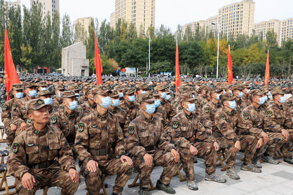 黨委副書記楊汝明主持大會,全體中層干部和三級科室負(fù)責(zé)人、2020級輔導(dǎo)員和全體新生、承訓(xùn)部隊教官共計4000余人參加。