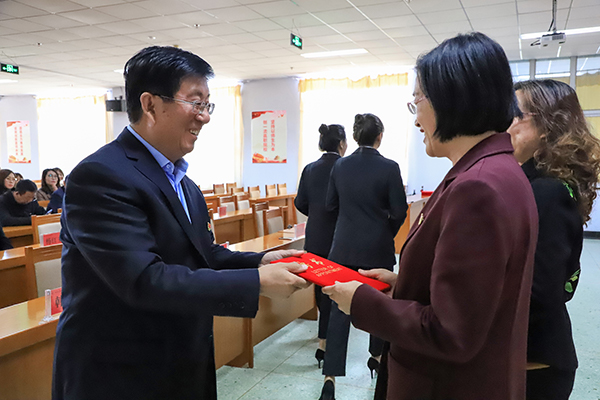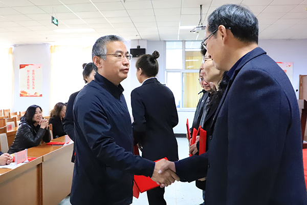 黨委書記馮印濤為學(xué)院黨建工作指導(dǎo)委員會委員頒發(fā)聘書;院長王立軍為教育教學(xué)督導(dǎo)委員會委員頒發(fā)聘書。