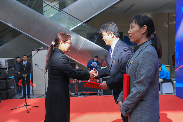河北省工程機(jī)械產(chǎn)業(yè)技術(shù)研究院院長王文梅為河北省工程機(jī)械產(chǎn)業(yè)技術(shù)研究院張家口職業(yè)技術(shù)學(xué)院分院院長許艷霞、副院長靳越頒發(fā)聘書。