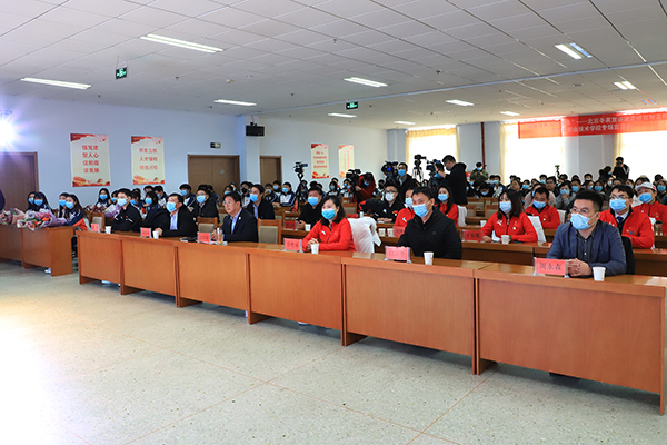 北京冬奧組委志愿者部副部長曲圓、團省委志愿者工作部周永森、中共北京市委講師團領隊徐艷麗、共青團張家口市委副書記溫旭春;學院黨委書記副書記楊汝明、副院長胡偉奇、紀委書記周文勝出席宣講活動。各系黨總支書記、團總支書記、崇禮團區委青年骨干志愿者代表、學院與崇禮分院骨干教師志愿者、學生骨干志愿者共計170余人現場聆聽了報告。