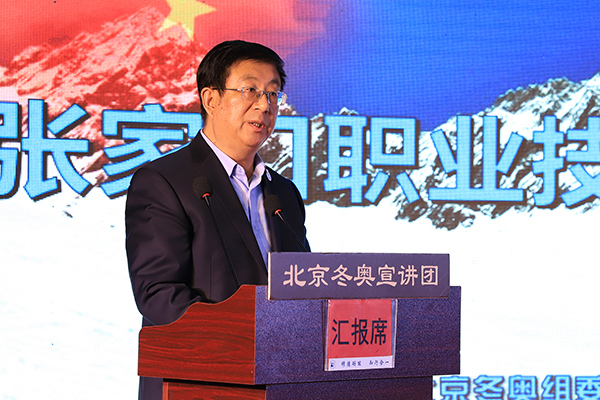 馮印濤強調,舉辦冬奧會、冬殘奧會是展現國家形象、促進國家發展、振奮民族精神的重要契機。我院將全方位參與和支持冬奧籌辦工作,進一步強化責任與擔當,探索與冬奧會的對接領域和對接點,全力做好2020年冬奧會志愿者招募工作,提高賽事服務水平;進一步強化落實與推進,在志愿者選拔、專業群調整、專業社團建設等方面加大支持力度;進一步強化宣傳與推廣,利用融媒體優勢,廣泛宣傳冬奧知識,營造濃厚的冬奧氛圍,持續提升冬奧會的影響力;進一步強化交流與合作,與北京有關高校及張家口市各高校資源共享、優勢互補,豐富志愿服務經驗,做好冬奧時代和后冬奧時代的人才培養工作;進一步強化精神和效果,增強師生使命感、榮譽感、幸福感和獲得感,養正毓德,礪能強技,打造“張職名片”,凝練“張職精神”,展示“張職形象”。