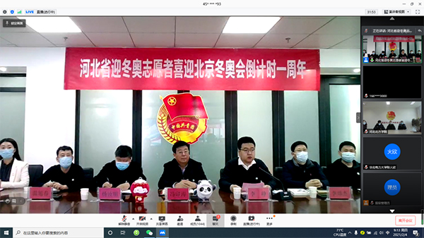 為深入貫徹習近平總書記在北京、河北考察北京2022冬奧會、冬殘奧會籌辦工作的指示精神,展現河北青年志愿者良好的精神風貌,扎實推進冬奧志愿服務工作,在2022北京冬奧會進入倒計時一周年之際,由共青團河北省委主辦,共青團張家口團市委、張家口職業技術學院、河北工程大學、華北電力大學承辦的“燃動青春 助力冬奧”——喜迎冬奧會倒計時一周年主題線上活動正式舉行,來自省內冬奧志愿者來源高校的萬余名志愿者共聚云端,祈福冬奧。