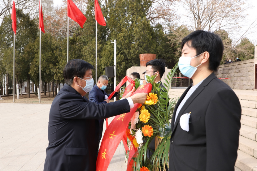 4月2日,清明節來臨之際,學院領導班子成員、全體中層干部、青年教師代表與經開區馬路東街道部分老黨員、東寧街社區工作者和黨員代表50余人在察哈爾烈士陵園開展祭掃活動,弘揚紅色精神,緬懷革命先烈,重溫黨的百年光輝歷程。