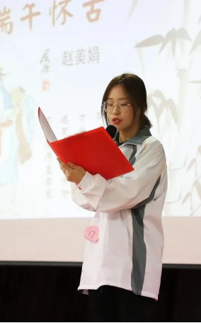 來自各教學(xué)系的50名參賽選手們滿懷真摯情感,聲情并茂地演繹了精心準(zhǔn)備的經(jīng)典文學(xué)作品。伴隨著古典韻律,《沁園春·長沙》《沁園春·雪》《將進(jìn)酒》《再別康橋》《岳陽樓記》等經(jīng)典名篇在選手吟誦與演繹中煥發(fā)出燦爛奪目的生命力;《七月,中國的選擇》《中華頌》《紅船》《我驕傲,我是中國人》讓現(xiàn)場觀眾伴隨著選手們的真情表達(dá),共同追憶百年黨史,傳達(dá)愛黨愛國之情,訴說愛黨愛國之意。選手們緊扣主題,以敘事、抒情的方式,慷慨激昂、娓娓道來,多重情緒交錯(cuò)將現(xiàn)場氛圍推至高點(diǎn),全場不時(shí)報(bào)以熱烈的掌聲。