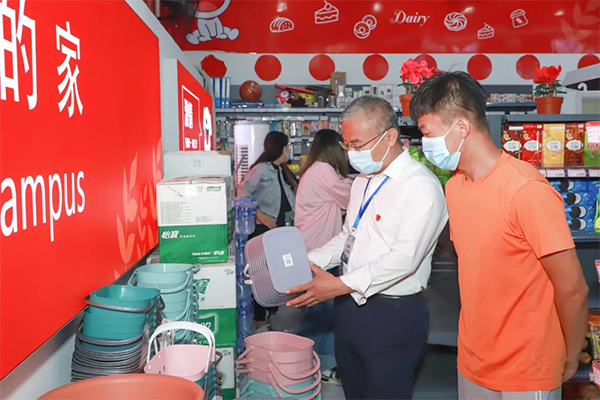 學院領導還實地察看了學院大門交通情況、校園測溫通道、校園京東館、師生快遞服務中心等生活服務場所,對校園疫情防控、生活物資供應、快遞消毒檢查等情況提出具體要求。