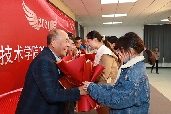 榮退儀式上,黨委副書記、院長王立軍為14位退休教師頒發(fā)榮譽紀(jì)念牌。