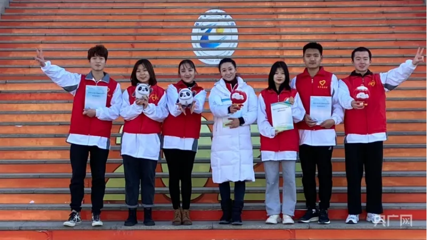 金銘鈺和志愿者在一起 祝愿冬奧會圓滿成功(央廣網(wǎng)記者 崇錦芳攝)