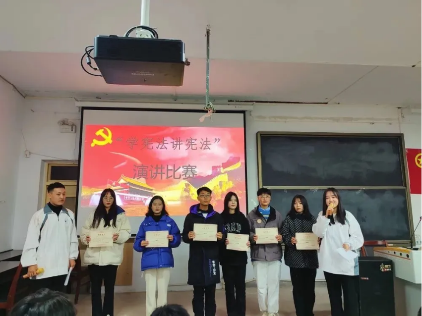 在演講比賽中,參賽選手們圍繞“學(xué)憲法,講憲法”主題,用激情飽滿的語(yǔ)言講述發(fā)生在他們身邊關(guān)于憲法的故事,盡情闡釋他們對(duì)憲法的理解。使憲法生動(dòng)形象地展現(xiàn)在同學(xué)們眼前,讓同學(xué)們更加愿意了解憲法,遵守憲法,維護(hù)憲法。在知識(shí)競(jìng)賽中,各班同學(xué)積極參加,最后按照分?jǐn)?shù)最高、用時(shí)最短的標(biāo)準(zhǔn)選出個(gè)人獎(jiǎng),其中不少同學(xué)取得優(yōu)異成績(jī)。