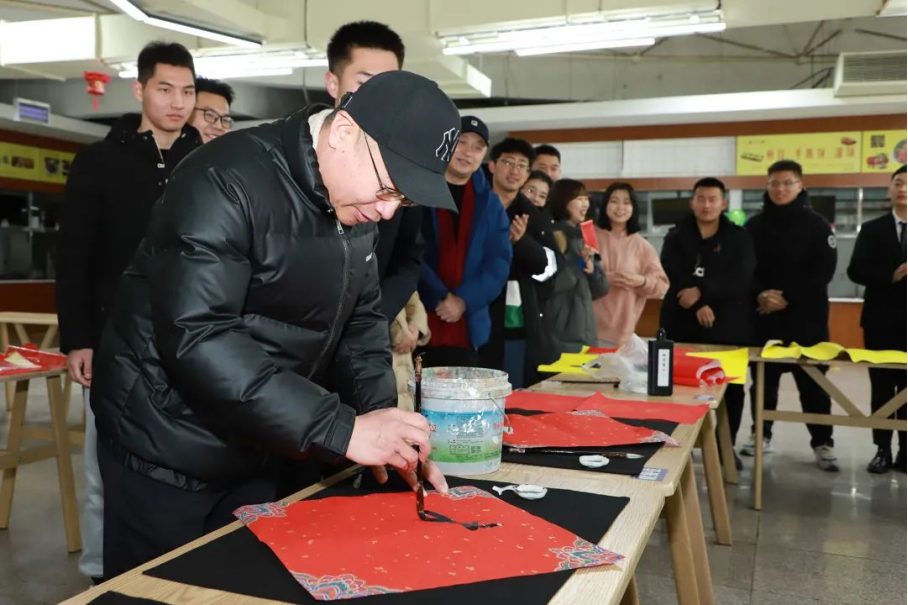 師生聯(lián)動寫春聯(lián),同啟虎年新征程。在師生們擺出“2022”字樣的餐桌上,黨委副書記、院長王立軍同師生一起書寫春聯(lián),為這個特殊的春節(jié)增添更多的喜氣。王立軍與師生們親切交談,送上美好的新春祝福。同時,留校師生們還精心籌備了師生春節(jié)聯(lián)歡會,為校領導們呈獻上了精彩的節(jié)目表演,贏得現(xiàn)場觀眾的熱烈掌聲。