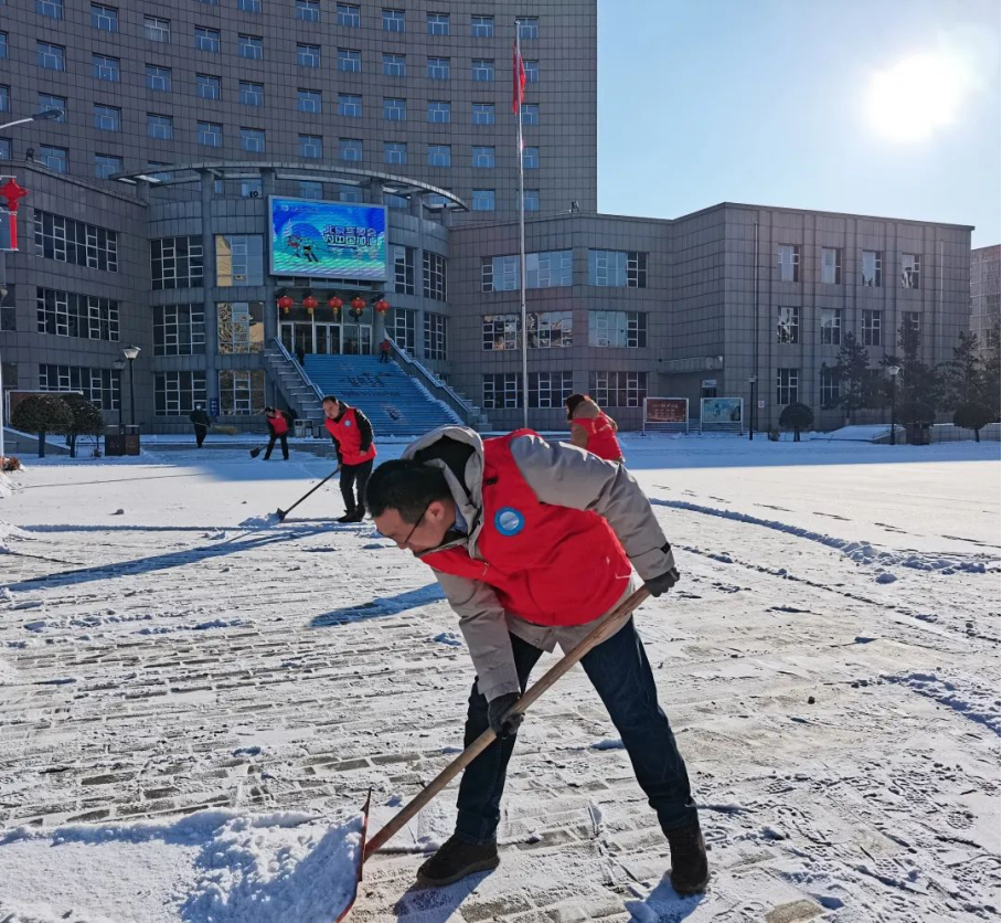 “以雪為令、隨下隨清、雪停路凈”,學院黨員干部積極響應上級號召,主動出擊,吹響了鏟雪除冰“集結號”。