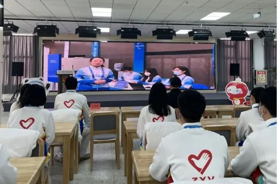 機電工程學院學生侯京奧作為冬殘奧會城市志愿者代表發言;與會人員共同觀看了賽會志愿者給城市志愿者的回信;臨時團支部書記李月婷代表賽會志愿者向城市志愿者們傳達了奉獻、友愛、互助、進步的志愿者精神,表達感謝并為即將上崗的城市志愿者傳遞經驗,鼓舞士氣。