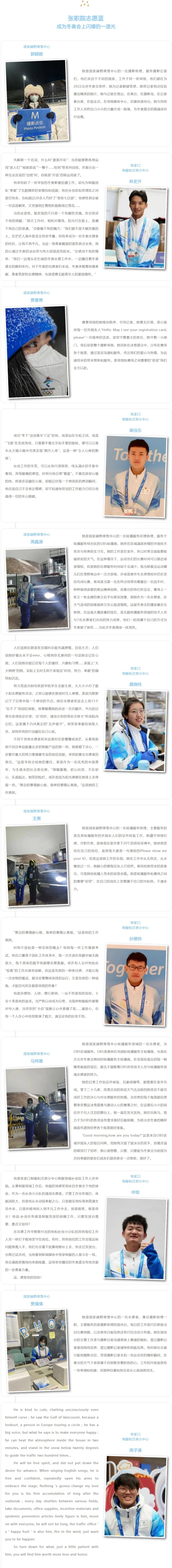 國家越野滑雪中心是本次冬奧會包攬了首金與末金唯一場館。我校6名志愿者分別服務于媒體運行領域的攝影,轉播服務領域的轉播服務綜合區。在極寒天氣下,他們每人平均在室外工作2.5小時甚至更多,人手不夠的情況下更是需要他們長時間堅守在崗位上。他們每天面對著大多數的外國攝影記者和OBS轉播商的工作人員都需要用英文交流,“Hello”“Can i see your card?”“Do you have armband?“Please fill in the information.”“Have a good time.”都是他們每天重復一遍又一遍說的話語,面對不同的點位,不同的記者,不同的問題,他們逐漸的可以獨當一面。睫毛上的冰珠,口罩帽子上的冰霜,風雪中的英姿,是他們最美好的經歷,最懷念的日子。他們是張職院的驕傲,是一個個小小的燈光,匯聚成一束強光照亮北京2022年冬奧會。