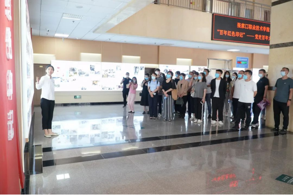與會的縣區、直屬企業和學校團委書記代表及團市委機關干部們還共同參觀我院黨史百年、建團百年和冬奧圖片展。