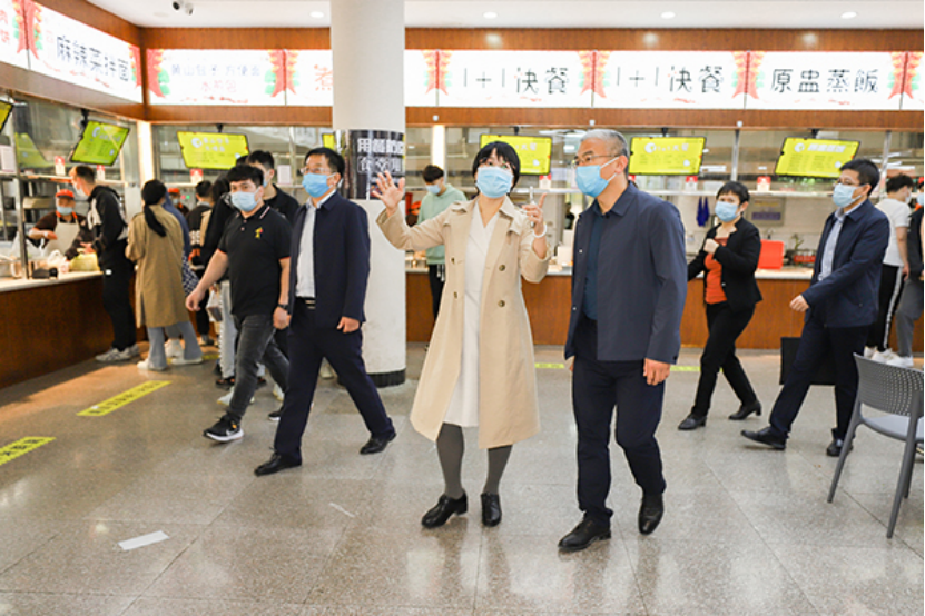 督導組一行實地察看了學校校門、教學場所、東外墻加固施工現場、文饗餐廳、防疫物資倉庫等校園重點區域,對校園封閉管理、環境消殺管理、食堂安全保障、師生核酸檢測、應急預案準備、隔離房間設置、重點人員管控、校園消防安全等情況進行了詳細了解。