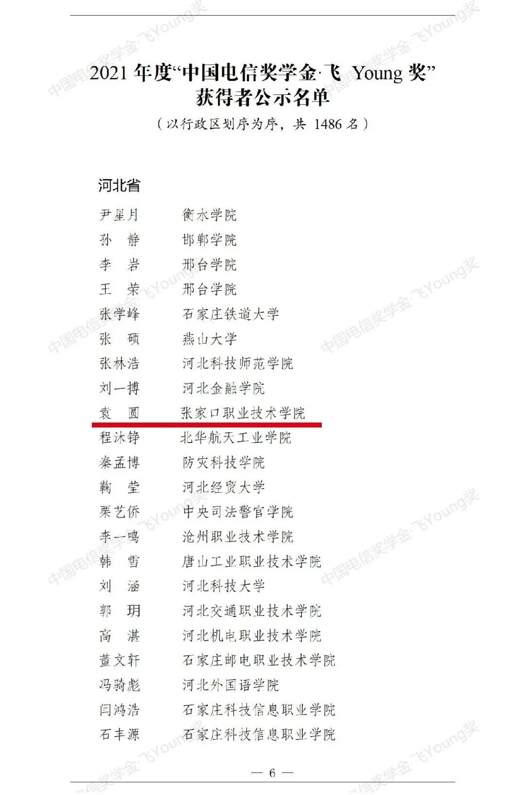 近日,由共青團中央、中國電信集團公司、中華全國學(xué)生聯(lián)合會主辦的2021年度“中國電信獎學(xué)金·飛Young獎”遴選活動結(jié)果揭曉,經(jīng)校級推選、省級初評、全國評審,我院土木工程系2020級工程造價五班學(xué)生袁圓位列獲獎?wù)呙麊巍?/span>