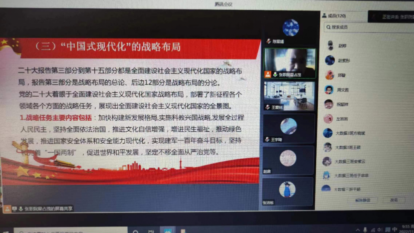 “更新教學內容、創新教學方法,讓黨的二十大精神原汁原味進課堂”。馬克思主義學院(思政部)立足自身對黨的二十大精神的學習集訓成果,開展了以“黨的二十大精神進課堂”為主題的形勢與政策課堂教學活動,讓近萬名學生通過思政課這一主陣地,對黨的二十大精神更好地入腦、入心、入行。