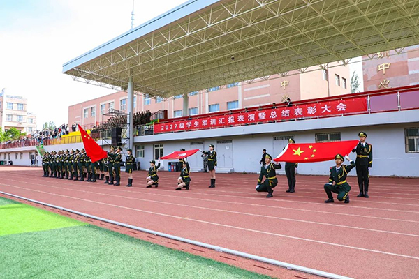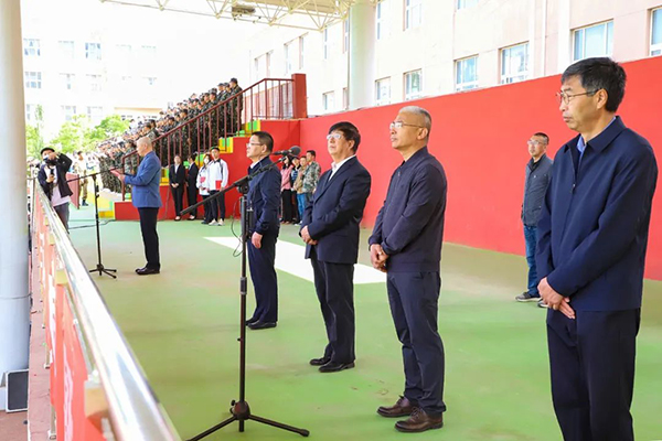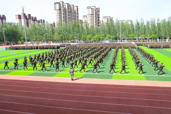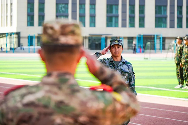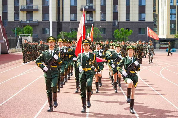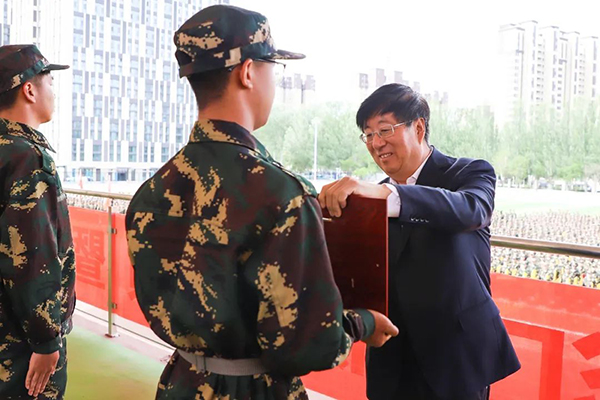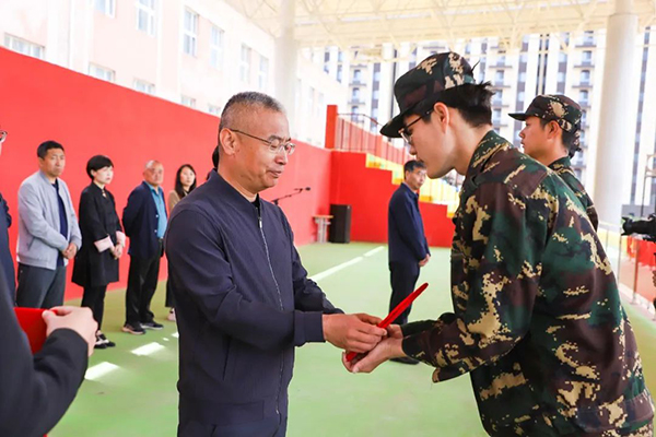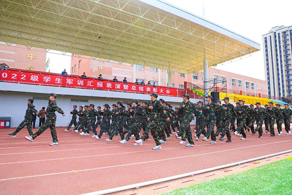 院長王立軍在致辭中強調,軍訓是成長的階梯,是難忘的人生經歷。同學們通過軍訓不僅磨練了意志,也懂得堅持和團結的力量,養成了嚴格的組織紀律性、不怕苦不怕累的作風和堅忍不拔的意志、勇往直前的精神。習近平總書記在建團100周年大會上指出了“新時代的中國青年,生逢其時、重任在肩,施展才干的舞臺無比廣闊,實現夢想的前景無比光明。”希望全體同學,向英雄學習、向前輩學習、向榜樣學習,爭做堪當民族復興重任的時代新人,在實現中華民族偉大復興的時代洪流中踔厲奮發、勇毅前進,不負韶華、不負時代、不負人民,在青春的賽道上跑出當代青年的最好成績。一是要堅定理想信念,涵養高尚品德。要樹立正確的世界觀、人生觀和價值觀,追求積極向上的人生目標,在服務人民、奉獻社會中實現自己的人生價值;要傳承中華民族傳統美德,弘揚以愛國主義為核心的民族精神和以改革創新為核心的時代精神,培育技能報國、振興中華的愛國情懷,涵養見賢思齊、崇德向善的高尚情操;要踐行社會主義核心價值觀,遵守社會公德,培養職業道德,錘煉個人品德,堅守誠信志,捍衛正義感,養成寬容心,胸懷大格局,努力成為新時代中華民族精神家園的守望者。二是要掌握扎實學識,練就過硬技能。要從要我學習轉變成我要學習,突出學習的主動性、自覺性;要從課本學習拓展到理實一體學習,掌握扎實的知識與技能;要從課堂學習延伸至社會學習,不斷豐富成長經歷。三是要練就強健體魄,擁抱健康生活。要以軍訓為新的起點,養成鍛煉身體的好習慣,通過鍛煉強健體魄,錘煉意志,保持身心健康,為學習生活打下良好的基礎。真正以自己的勤奮實踐,努力拼搏,在求知中開拓視野,在篤行中收獲成功,把青春熱血融入黨和人民的事業,在奮進中華民族偉大復興新征程中,逐夢精彩人生,創造出無愧于時代的美好未來。