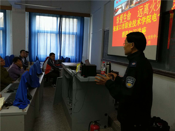 11月8日, 電氣工程系邀請市社安防火宣傳中心的夏教官為系部師生作了一場精彩的消防安全知識培訓(xùn)講座。系書記王溢澤、系副主任羅振成、系全體教師及學(xué)生代表參加了此次培訓(xùn)。