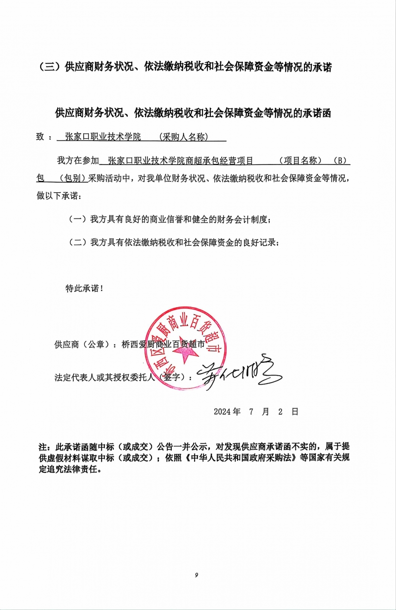 張家口職業技術學院商超承包經營項目(B包)