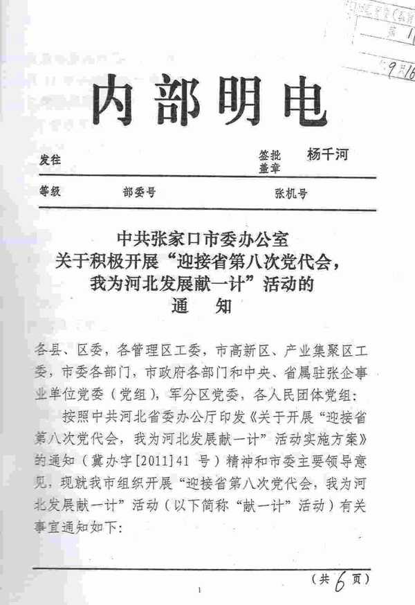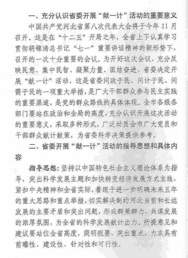 關于積極開展“迎接省第八次黨代會,我為河北發展獻一計”活動的通知