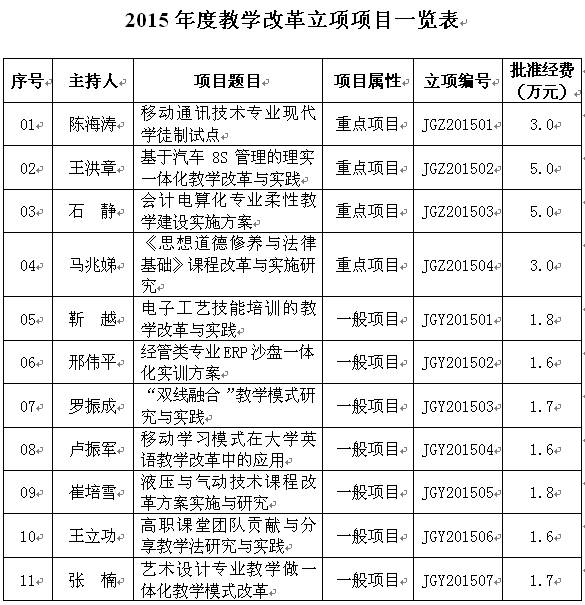 2015年5月15日,教務處組織10名評審專家和17名教學改革項目組成員,在綜合辦公樓609會議室進行教學改革立項審議活動。教學改革立項審議活動的程序是: