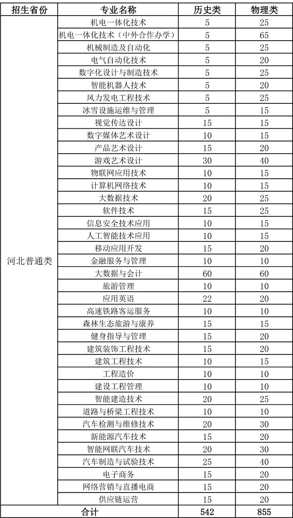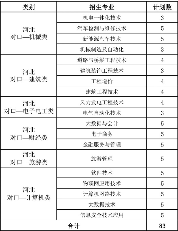張家口職業(yè)技術(shù)學(xué)院2023年分省分專業(yè)招生計(jì)劃