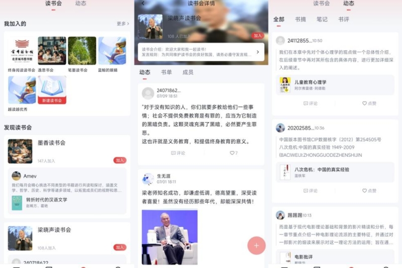 此外,讀者還能創(chuàng)建讀書會,作為專屬的線上閱讀交流平臺,由創(chuàng)建者管理運(yùn)營,成員間共享資源,共同構(gòu)建線上精神棲息地,與書友并肩探索閱讀世界。