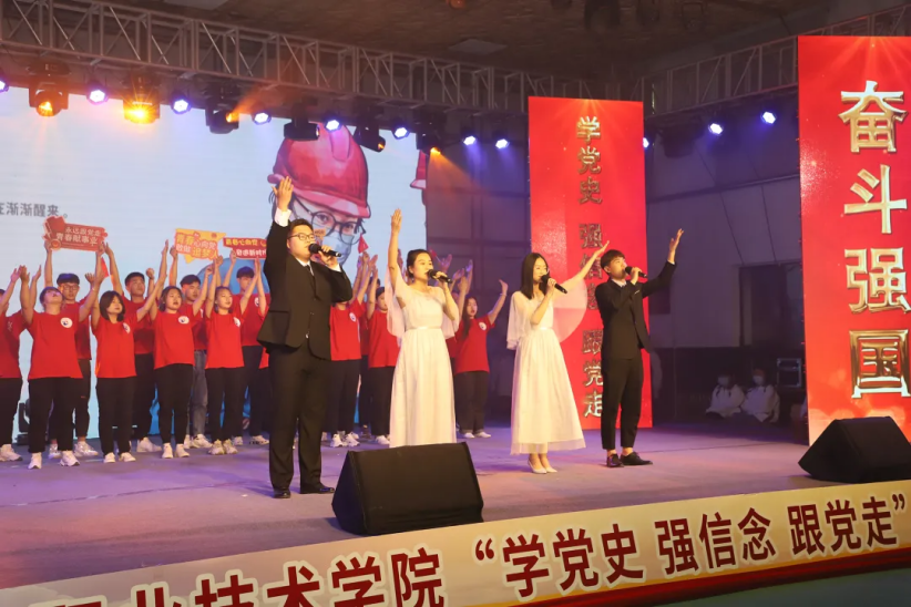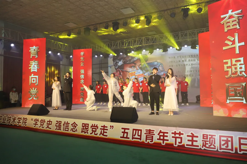 活動(dòng)過程中,精心編排的文藝演出將整場(chǎng)氣氛不斷推向高潮。大學(xué)生青春文藝團(tuán)的合唱《少年》,詮釋出新時(shí)代青年學(xué)生一心向黨、昂揚(yáng)奮進(jìn)的精神風(fēng)貌;話劇《覺醒年代》藝術(shù)地再現(xiàn)了一百年前崢嶸歲月中,中國(guó)先進(jìn)分子和熱血青年通過思想轉(zhuǎn)變不斷探尋救國(guó)之路;情景劇《同心抗疫》回顧了2020年戰(zhàn)“疫”過程中涌現(xiàn)出來的醫(yī)生、警察、志愿者等不同優(yōu)秀群體的先進(jìn)事跡,向每一位在抗擊疫情中舍小家為大家的人民公仆表達(dá)敬意;合唱《當(dāng)代力量》唱出了廣大青年學(xué)生對(duì)祖國(guó)的熱愛,對(duì)中國(guó)戰(zhàn)疫英雄的敬意;歌曲《少年中國(guó)說》呈現(xiàn)了青春校園中青年學(xué)生積極向上、朝氣蓬勃的精神面貌和為學(xué)校、社會(huì)、國(guó)家發(fā)展貢獻(xiàn)力量的信心和決心;獨(dú)舞《芳華》優(yōu)美大氣,抒發(fā)著對(duì)祖國(guó)深沉的愛;舞蹈《夢(mèng)圓冬奧》表達(dá)了張職學(xué)子對(duì)2022冬奧會(huì)的美好祝福。