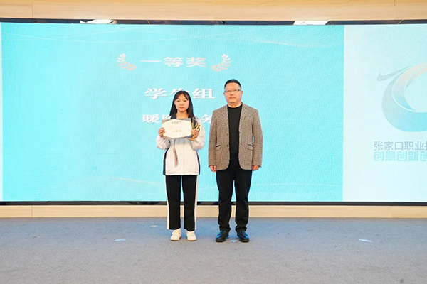 開元控股集團董事長侯冠夫、張家口工業(yè)設計創(chuàng)新中心部長姚亞莉和學院紀委書記周文勝分別為學生組一、二、三等獎獲獎團隊頒獎。